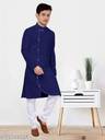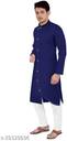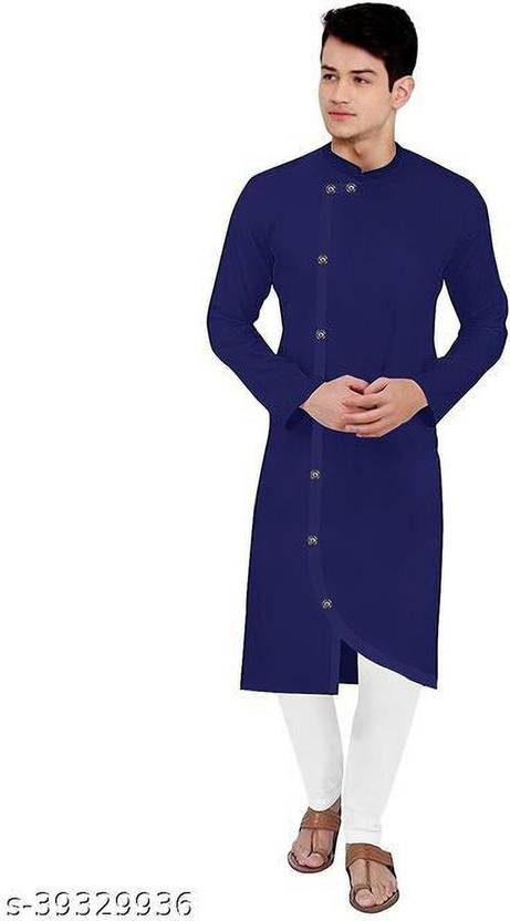Men Solid Cotton Blend Straight Kurta (Dark Blue)