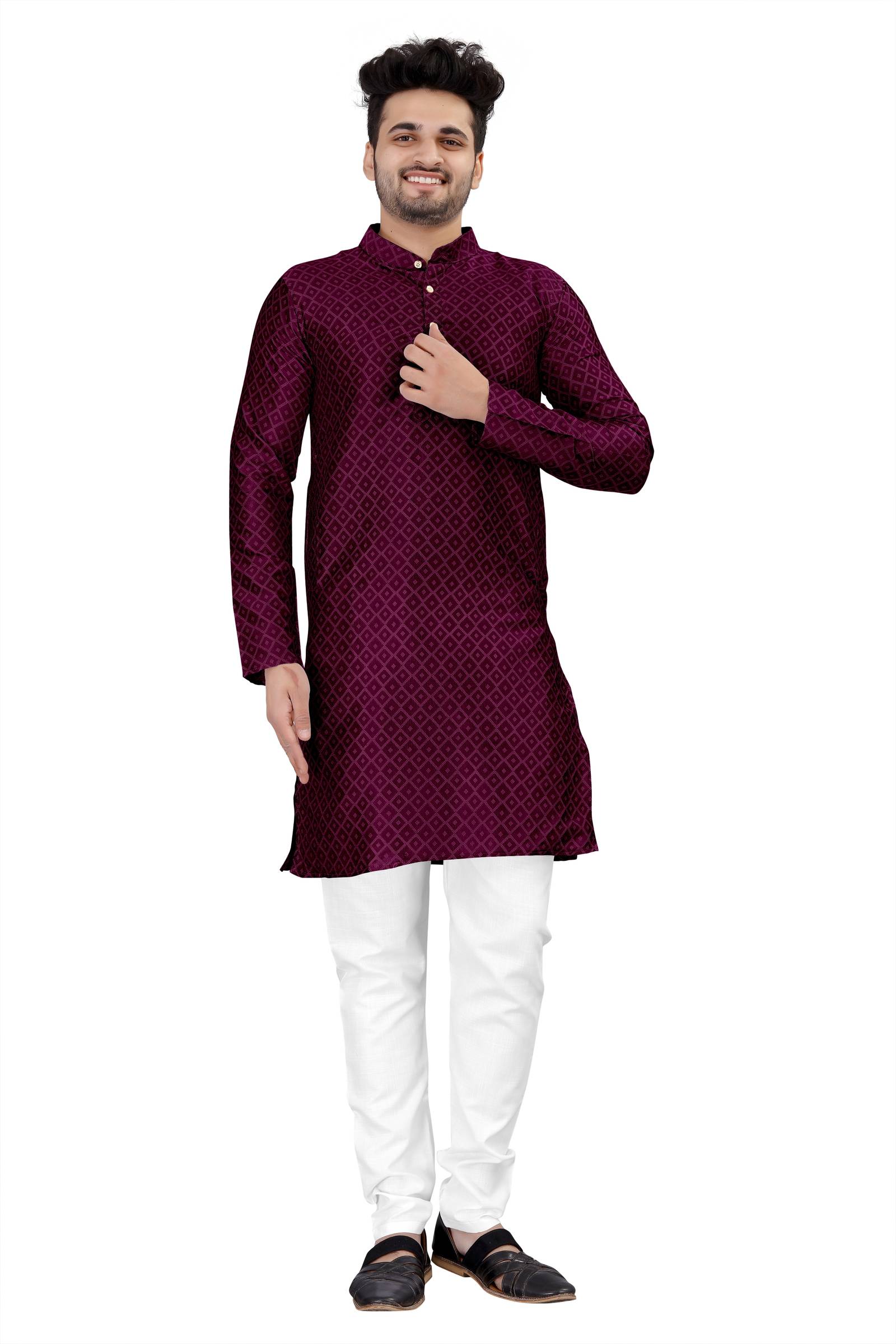 PARALLEL TIMES Men Solid Straight Kurta (Maroon)