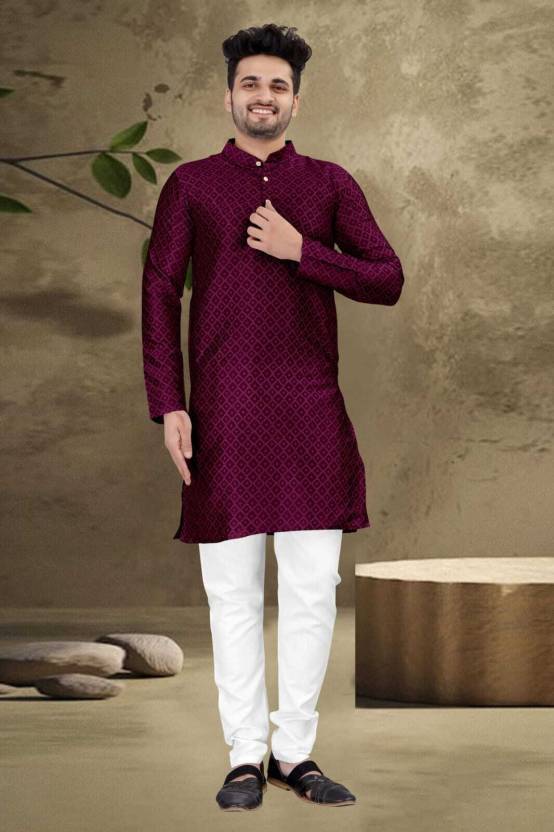 FINFOL Men Woven Design Jacquard Flared Kurta (Purple)