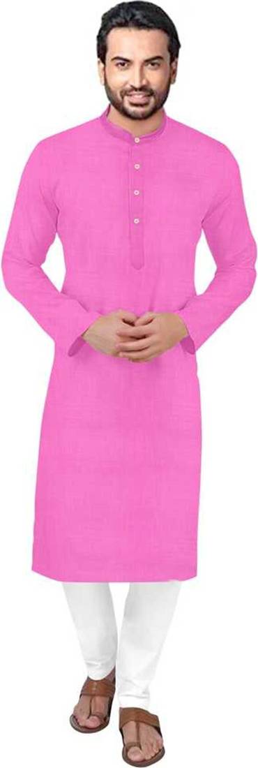 PARALLEL TIMES Men Solid Straight Kurta (Pink)
