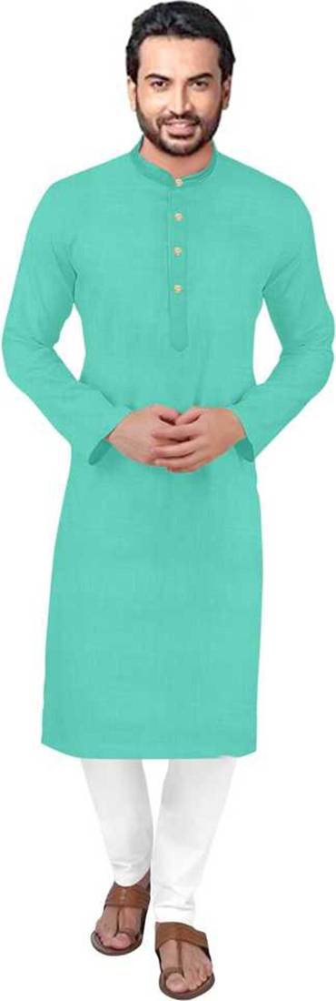 PARALLEL TIMES Men Solid Straight Kurta (Light Blue)