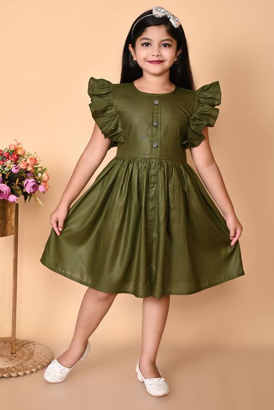 Paramount NX Girls Midi/Knee Length Festive/Wedding Dress (Dark Green, Fashion Sleeve)