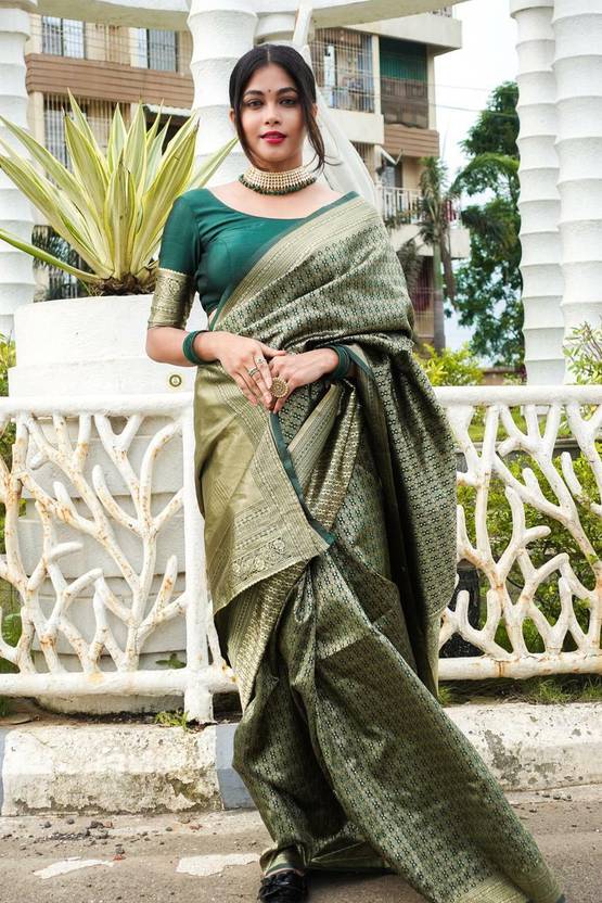 PARAMPARA CREATION Is Now Coming Up With New Colour Design Pure Soft Lichi Silk Silver Jari All Over The Body With Heavy Jaquard Border.With Beautiful Trendy And Grand Rich Pallu. With Beautiful Weaving Jaquard Border And Full Body Butti Blouse Piece.Saree Features Bright And Traditional Look, Light Weight, Easy To Drape.