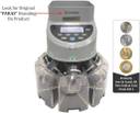 FEATURES • Count and sort mixed coins into the different drawers/bags. •Count and sum the total value of all denomination. •Count and sum the total quantity of each denomination. •Batch function it can be batched with the different denomination at the same time. •Can Count All new Indian 1, 2,5 and 10 Coins. SPECIFICATION: •Ambient temperature : Normal temperature (20C~35C) •Ambient Humidity : 30-80% •Hopper capacity : 1000units Each denomination •display : 3 digits(small) Value or quantity display : 7 digits(big) Power source : 90~240ACV/50Hz60Hz •Power consumption : <80W Dimensions : 415*194*330mm Net weight : 6.8kg Sorting speed : 1200(16mm),1000(20mm)pcs/min