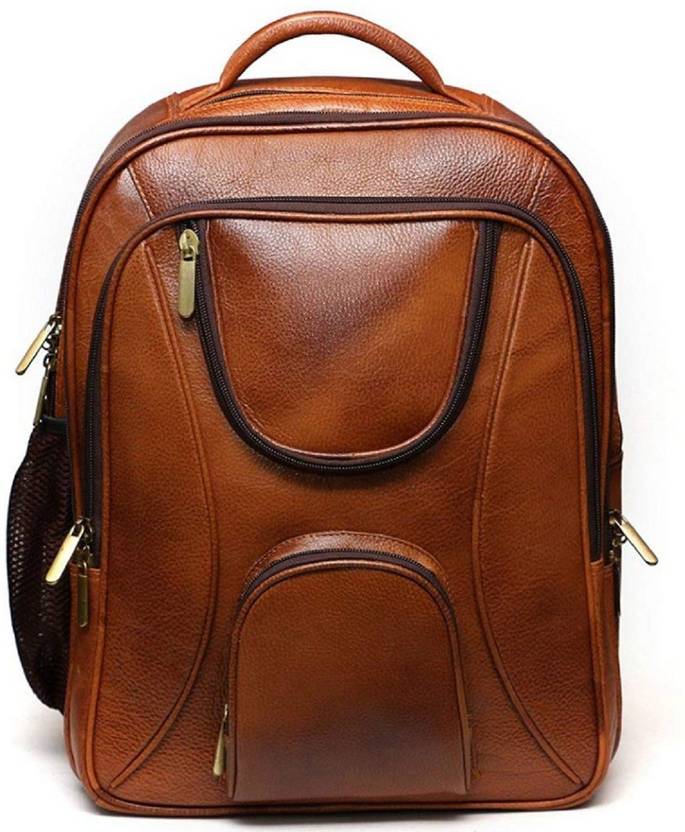 PARE Small 16 L Backpack Leather Laptop backpack (Brown)