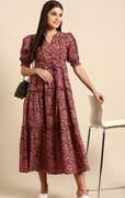 PARI A1 Women Fit and Flare Red Knee Length Dress