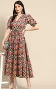 WOMANS COTTON RAYON HAND BLOCK PRINTED ANARKALI SHORT SLEEVES KURTI FOR GIRLS AND WOMANS
