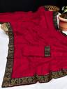 patu plus Solid/Plain, Self Design, Dyed Bollywood Georgette Saree (Red)