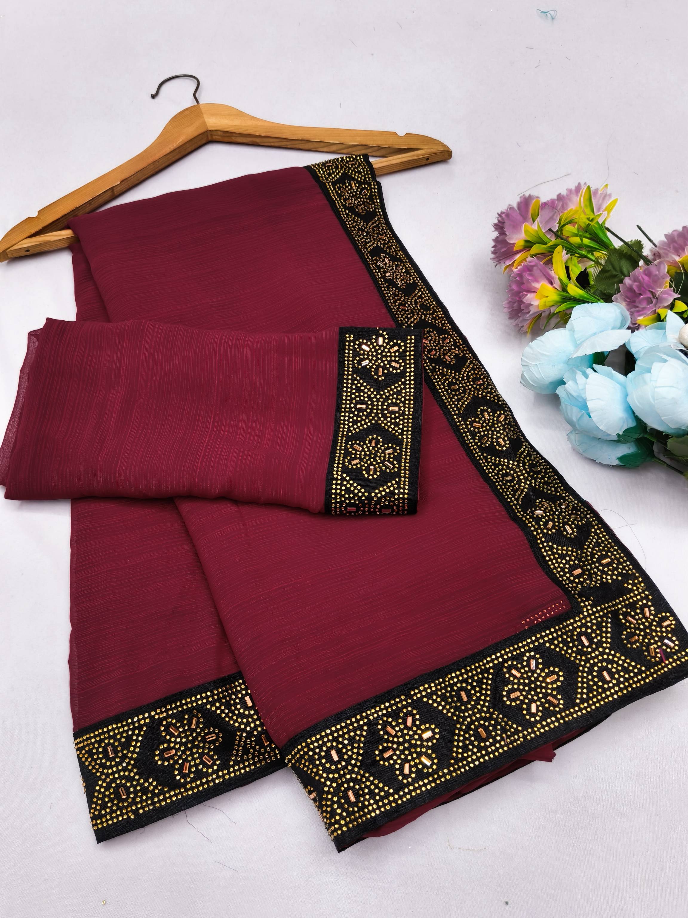 patu plus Solid/Plain, Self Design, Dyed Bollywood Georgette Saree (Maroon)