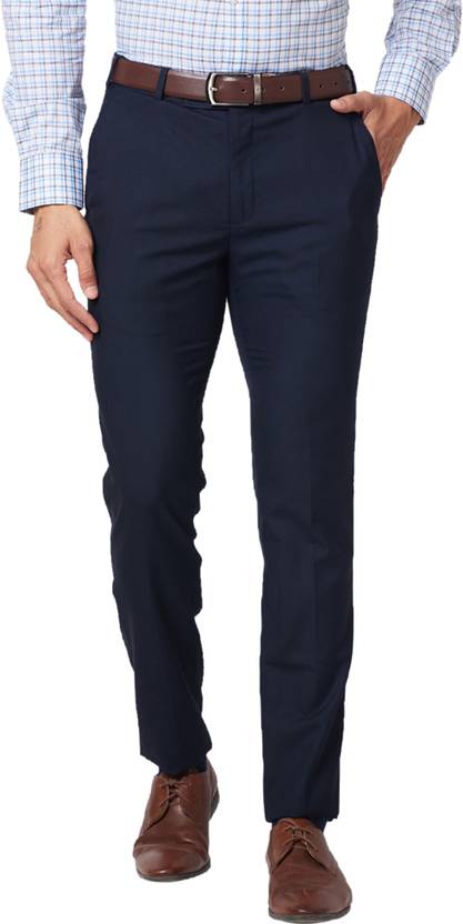 Featuring comfort and style, these Trouser will make a great addition to any wardrobe. These Dark Blue Super Slim Fit with a Mid Rise can be paired with canvas shoes and a printed shirt when you need a laid-back work outfit. Made of 70% Polyester, 30% Viscose.