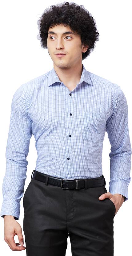 PARK AVENUE Men Checkered Formal Blue Shirt