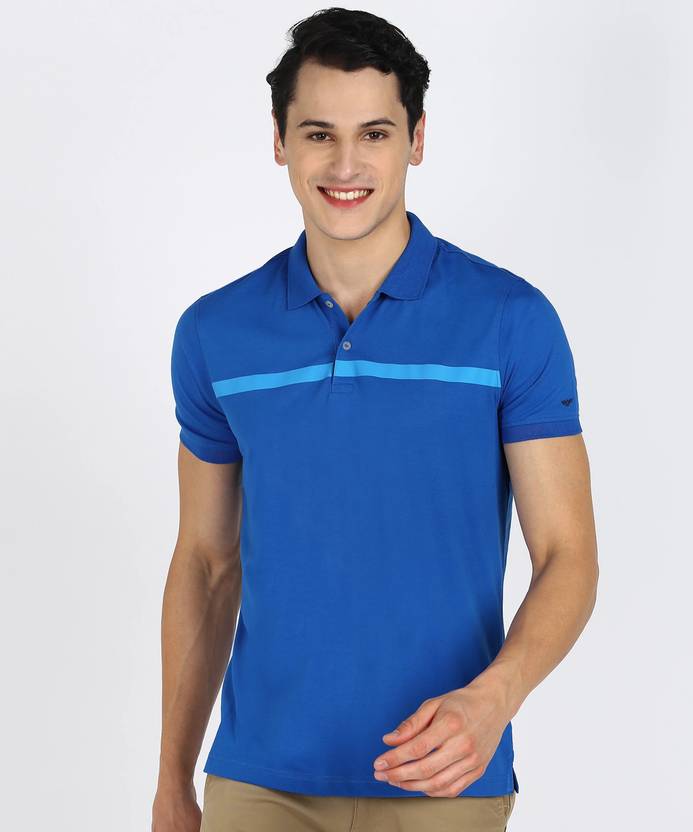 PARK AVENUE Solid Men Polo Neck Blue T-Shirt