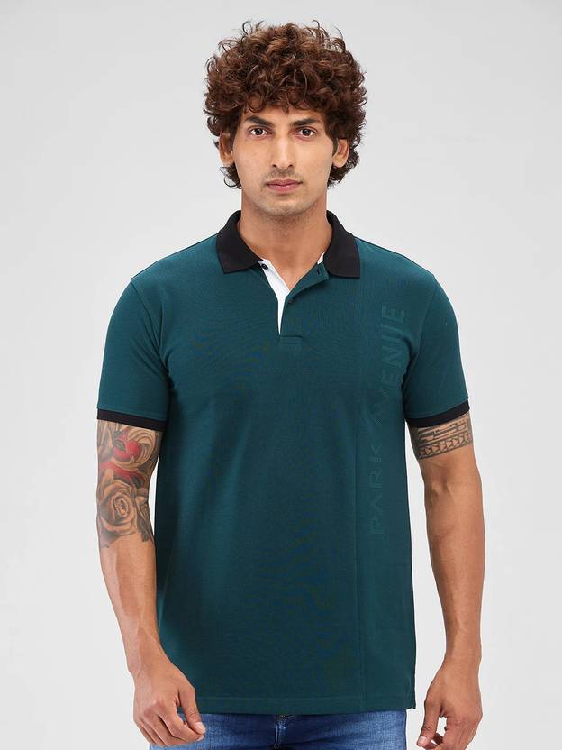 PARK AVENUE Solid Men Polo Neck Dark Green T-Shirt