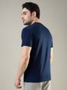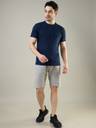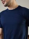 Men Solid Round Neck Cotton Blend Dark Blue T-Shirt
