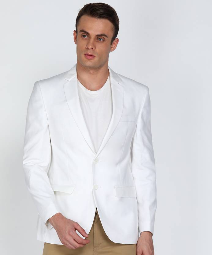 PARK AVENUE Solid Single Breasted Casual Men Blazer (White)