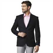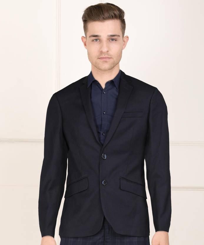PARK AVENUE Solid Single Breasted Formal Men Blazer (Dark Blue)