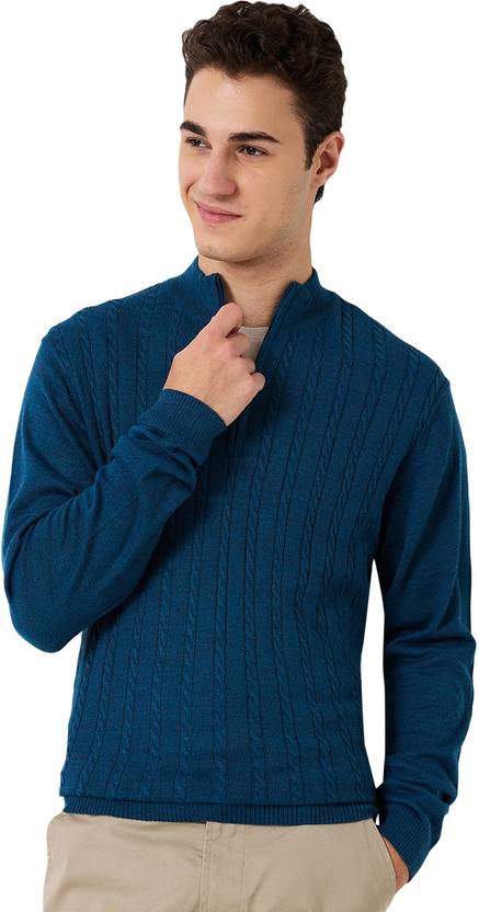 PARK AVENUE Solid V Neck Casual Men Dark Blue Sweater