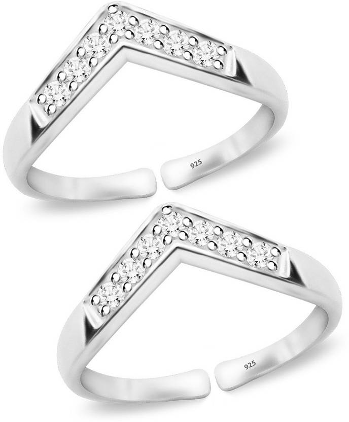 Parnika Exotic CZ Adorned Contemporary Design Chandi Bichiya for Women | Pure 92.5 Sterling Silver Cubic Zirconia Toe Ring