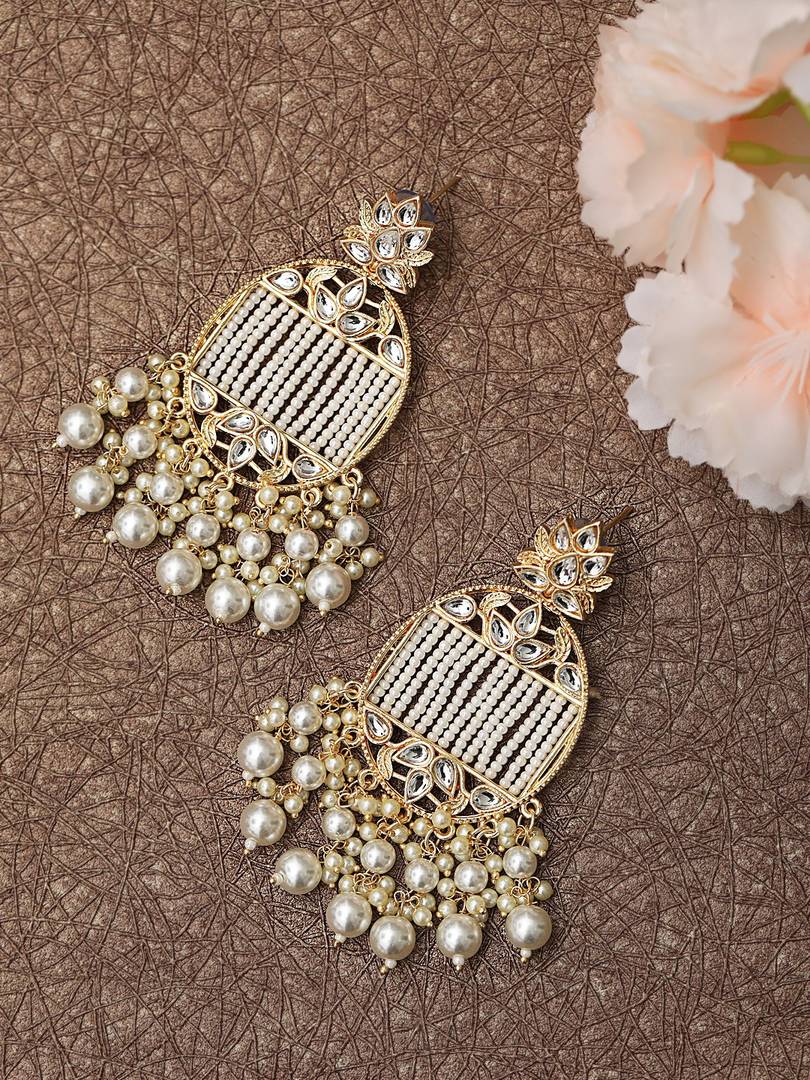 Parnikafashion Gold-Plated Kundan Pearl Studded Earrings Beads Alloy Stud Earring