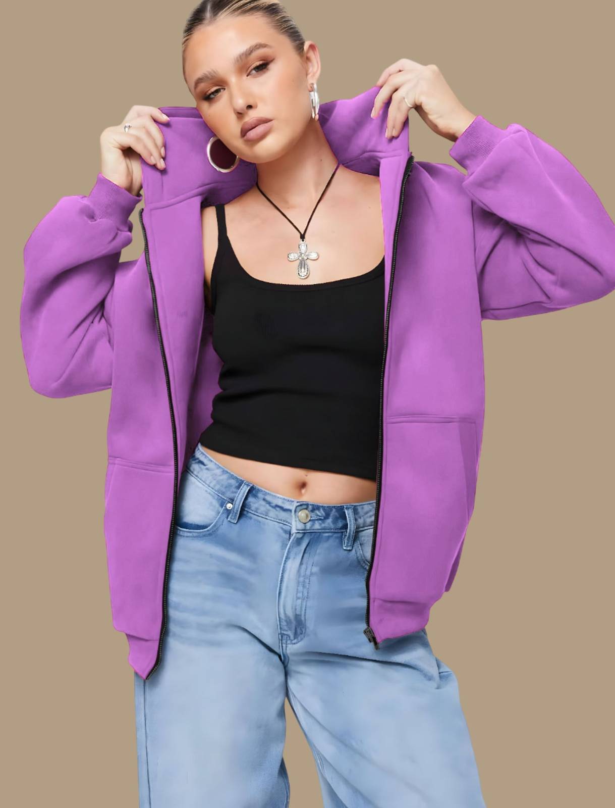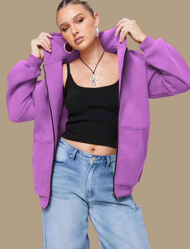 this Women Solid Full Sleeve Hooded Neck Sweatshirt. Crafted from premium fleece fabric, it offers ultimate comfort, softness, and warmth throughout the day. Designed with a front zipper closure, it allows easy wear and adjustable ventilation, making it perfect for all-day use. The hooded neck design adds an extra layer of protection against cold winds, while giving you a trendy, sporty look.