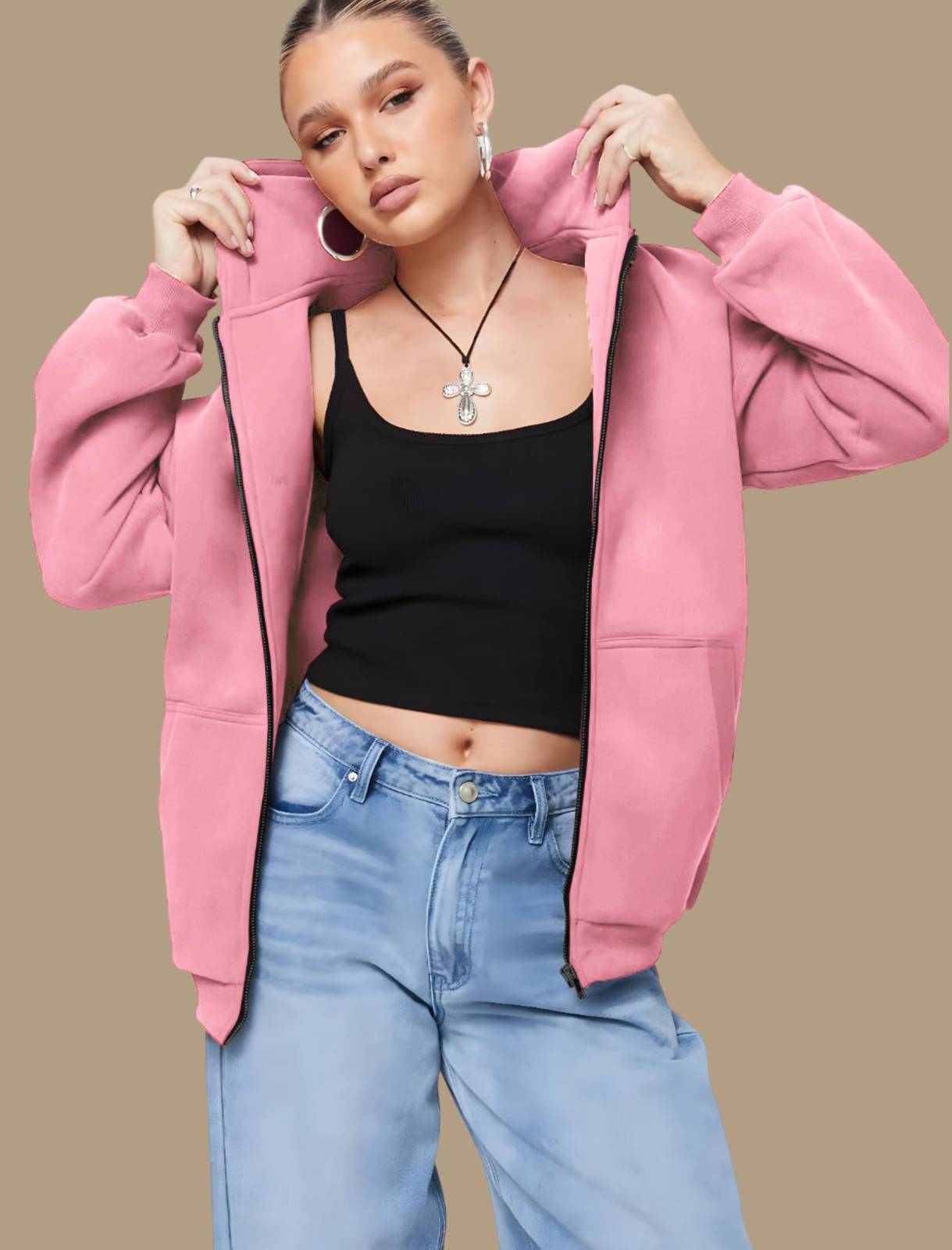 this Women Solid Full Sleeve Hooded Neck Sweatshirt. Crafted from premium fleece fabric, it offers ultimate comfort, softness, and warmth throughout the day. Designed with a front zipper closure, it allows easy wear and adjustable ventilation, making it perfect for all-day use. The hooded neck design adds an extra layer of protection against cold winds, while giving you a trendy, sporty look.
