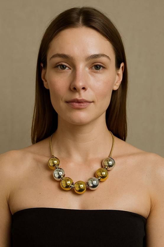 ELEGANT GOLD & SILVER SPHERICAL BEADS NECKLACE