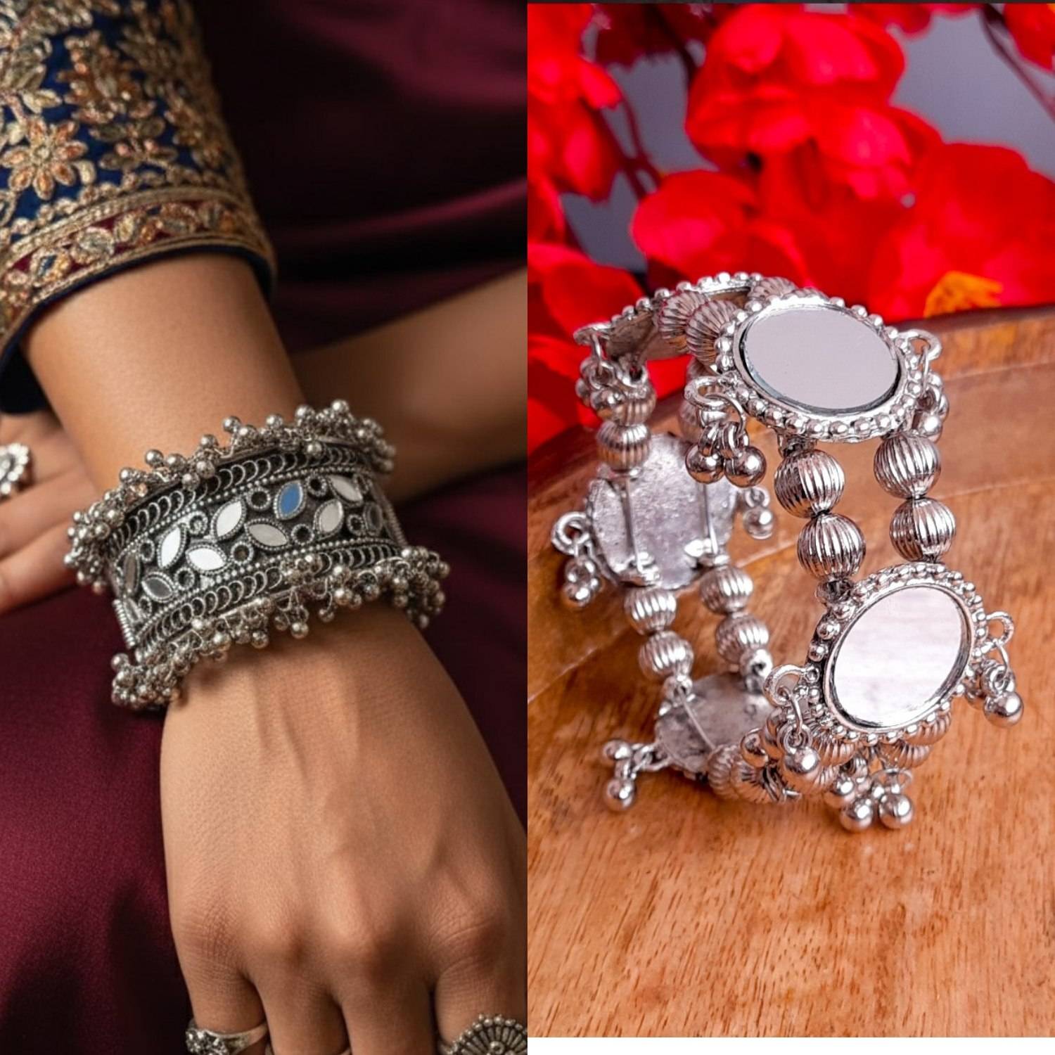 Pack of 2 oxidised opanable bangle and bracalet