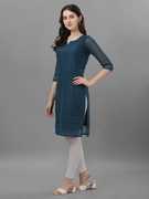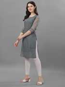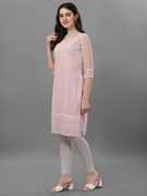 Elegant kurta featuring delicate floral embroidery and a sheer overlay. Designed with spaghetti straps and tie-up details for a modern ethnic look. Perfect for festive and casual occasions