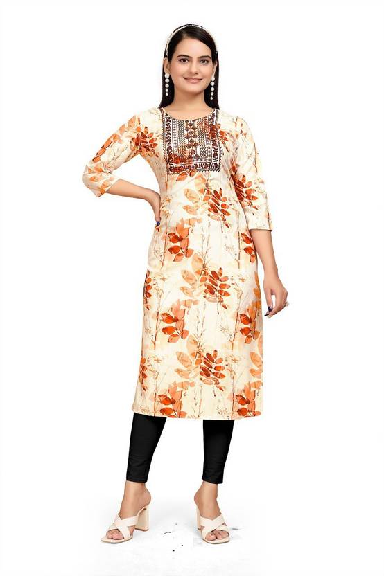 Poly Rayon Round Neck Straight Kurti With Divider Pant Fully stitched Kurti