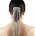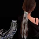 Hair Clips For Women With Diamond Necklace Tassel Hairpins Ponytail Holder Hair Accessories Tassel Crystal Headdress (Silver)