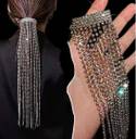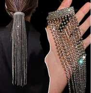 Diamond necklace with a fashion personality design Elegant headband hair accessories, tassel hairpins ponytail holder hair accessories Long chain hair accessories with bling bling effect, made of high quality rhinestone and metal material. It can be used to enhance the overall appearance of an outfit by applying it to ponytails and long hair.