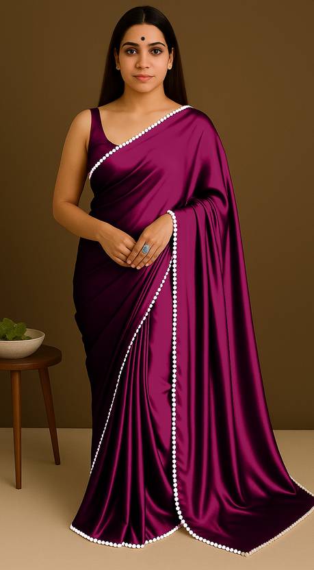 Soft Satin Saree for Women with Pearl Border