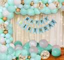 party assets Happy Birthday Mint Green BalloonsNet Curtain LED Light Back Drop Decoration Set (Set of 101)
