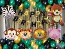 PARTY BREEZE Jungle Theme Happy Birthday Decoration Combo Kit with Animals Banner balloons (Set of 49)