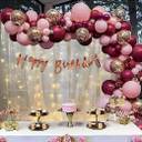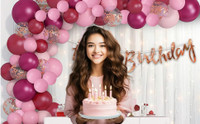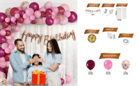 PARTY MIDLINKERZ Solid Girl Pink Burgandy Birthday Kit with White Net Curtain Cloth and LED Lights Balloon (Multicolor, Pack of 75)