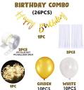 PARTY MIDLINKERZ Solid Printed Happy Birthday Decoration kit Combo - 26 Pcs for Birthday Decor Balloon (Gold, Pack of 26)