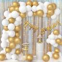 PARTY MIDLINKERZ Solid White and Golden Balloon Decoration for Birthday|with Led Light an Curtain Balloon (White, Gold, Pack of 70)