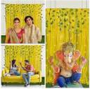 PARTY MIDLINKERZ Solid Yellow net Curtain Cloth Backdrop Combo with Green Leaves for Wall Decorations Balloon (Multicolor, Pack of 6)