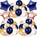 PACKAGE INCLUDE: 20pcs 9 inch navy blue balloons, 10pcs 9 inch pink balloons, 10pcs 9 inch golden balloons, 10pcs 9 inch white balloons, 10pcs 9 inch golden confetti balloons, 2pcs blue star foil balloons, 2pcs 18 inch pink star foil balloons, OCCASION: Navy blue rose gold balloons are birthday party, baby shower, bridal shower,, wedding party.