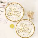 Package Include: 10pcs Happy Birthday Print in White Round Paper Plates, Size measure approx. 7 inches in diameter.