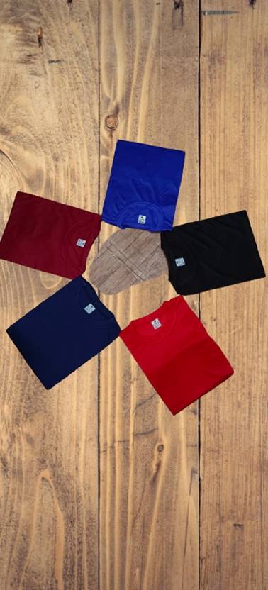 Pack of 5 Men Solid Round Neck Polyester Multicolor T-Shirt