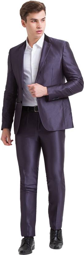 PARX CONTRAST NOTCH LAPEL SUIT IN URBAN FT Self Design Men Suit