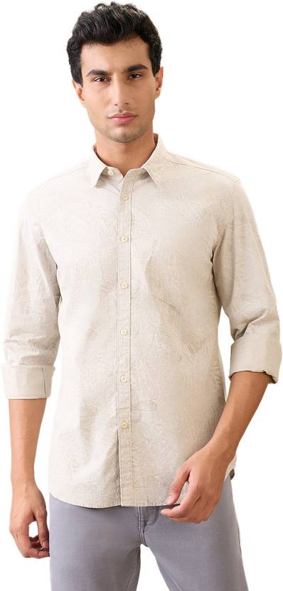 Men Slim Fit Solid Cut Away Collar Casual Shirt