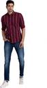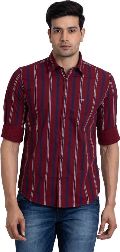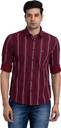 PARX Men Striped Casual Maroon Shirt
