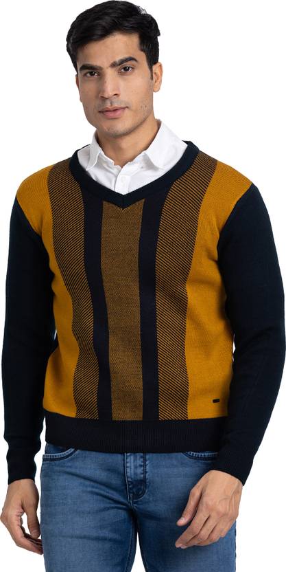 Slip into this snug V Neck Sweater and look your very best. Wear this Self Design piece many ways, with dark wash jeans, cuffed chinos and more. This Sweater made of 100% Acrylic.