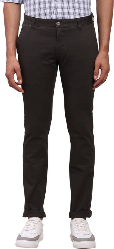 Men Slim Fit Dark Green Cotton Blend Trousers