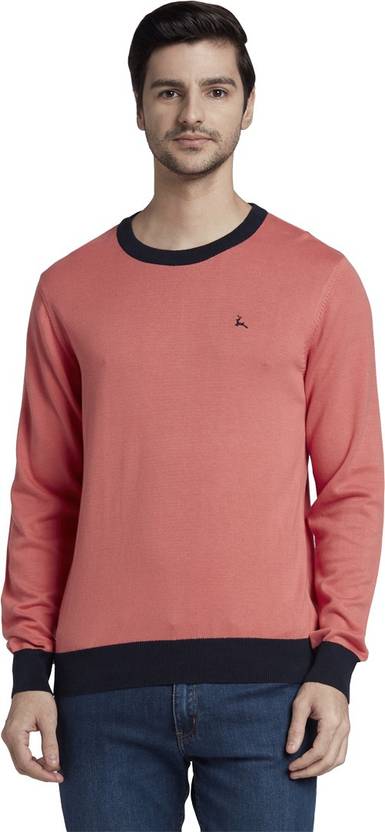 PARX Solid Round Neck Casual Men Orange Sweater