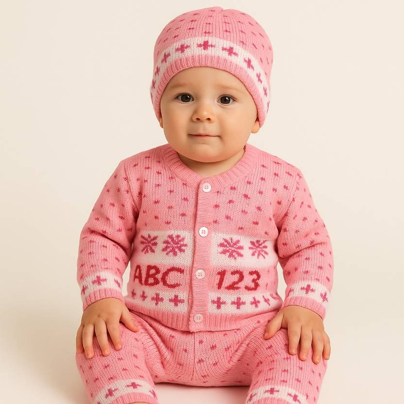 Soft & Cozy with Love: We craft baby sweaters with love and care, ensuring they’re gentle on your newborn’s delicate skin. Endless Comfort All Day: Breathable and cozy design to keep your little one warm and content from morning to night. 3-Piece Set: This adorable set comes in multicolors. The combo includes a cardigan, pants and caps.