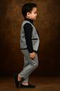 Make your little prince look charming with this Baby Boys Festive & Party Outfit Set. The set comes with a stylish shirt, a smart waistcoat, and matching pants in an elegant grey color. Perfect for birthdays, weddings, festive occasions, or parties, this outfit combines comfort and fashion in one. Crafted from soft, breathable fabric, it ensures your baby boy stays comfortable while looking handsome and well-dressed.