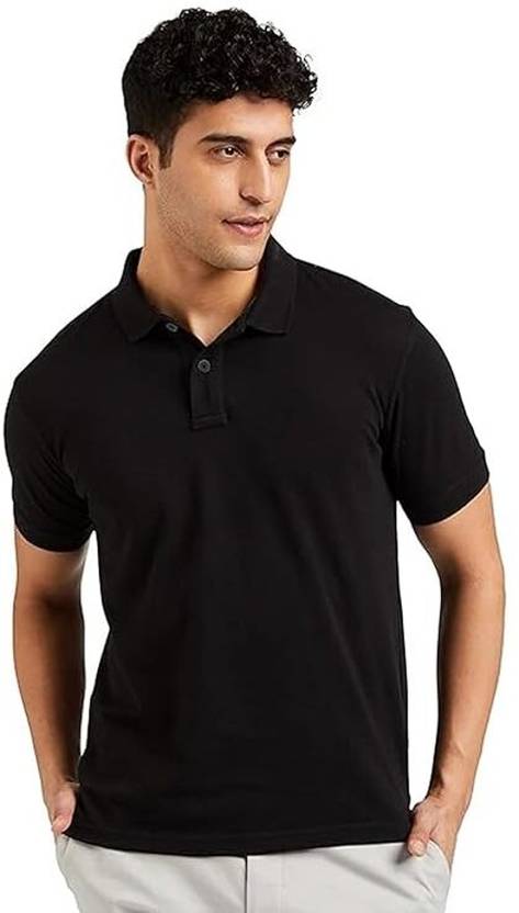 Men Cartoon Polo Neck Pure Cotton Black T-Shirt